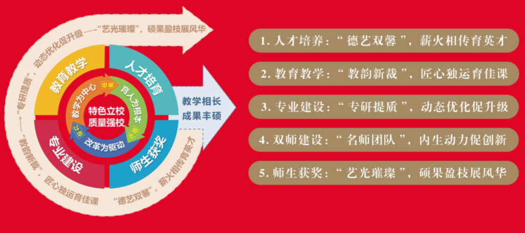 学院始终秉持“德艺双馨”育人理念,构建了“学生为本、名师立校、学演结合、服务社会”的人才培养体系。各专业系部积极推进从“单一技能传授”向“综合素质培育”的深刻转型,坚持“教、学、演、创”四位一体培养模式,通过校企共建实训基地、订单班等形式,实现产教深度融合。