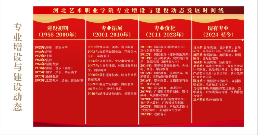 专业发展历程:从建校初期的戏曲表演逐步拓展至音乐、舞蹈、美术、戏剧、影视等领域的29个专业