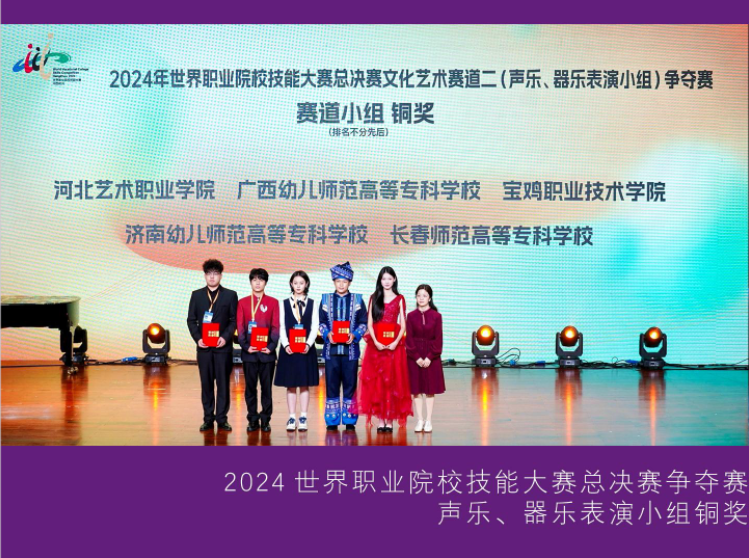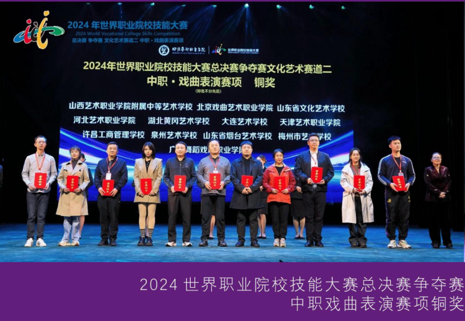 学院师生在国内外权威赛事中屡创佳绩,充分彰显办学实力。各专业系部选送优秀师生参与各类高水平竞赛,在“桃李杯”“ 文华奖 ”“ 梨花杯”等重大艺术赛事中表现卓越,荣获多项重要奖项。戏剧系团队荣获全国职业院校技能大赛(中职组)“戏曲表演 ”赛项一等奖第一名。在世界职业院校技能大赛争夺中,学院先后获得3银3铜的优异成绩,在“互联网 +”大学生创新创业大赛中荣获国赛铜奖。各专业师生在各类行业赛事中持续摘金夺银,“以赛促教、以赛促学”成效显著,竞赛品牌影响力持续提升,成为彰显学院办学实力的亮丽名片。