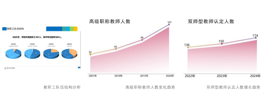 师资是学院发展核心竞争力,学院现有教职工 337 人,其中专任教师 285 人,“双师型”教师 174 人,硕士以上学位 171 人,高级职称 120 人,同时聘请行业内具有丰富实践经验的艺术家、技术骨干 190 人担任产业导师、兼职教师,建设了一支师德高尚、业务精湛、专兼结合、结构合理的高水平师资队伍。