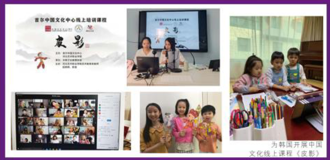 艺术教育系在国际交流领域成果丰硕:2020年参与“首尔:中国文化节”,开设中韩线上皮影课程,2021年获准与韩国又松信息大学开展联合办学:2025 年斩获首届中美青少年啦啦操交流赛优秀奖,同年完成学前教育"国家专业标准开发项目--塞拉利昂"项目建设,实现学院教学标准国际输出零的突破。
