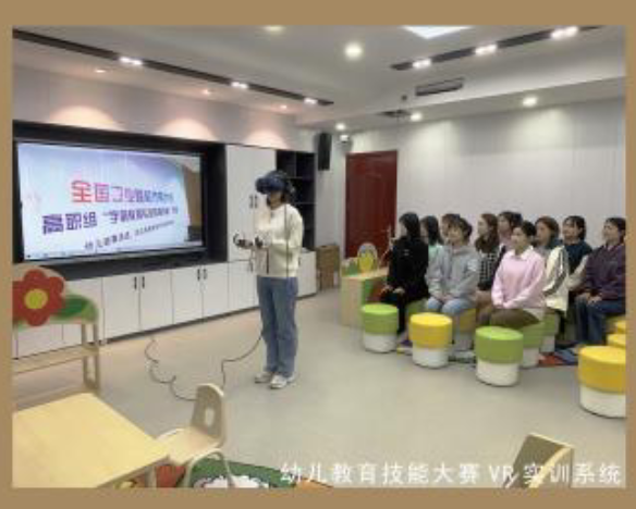 教学设施完备,建有理实一体化学前教育综合实训室、蒙台梭利、奥尔夫音乐等专项实训室共 19 间。配备幼儿园模拟实训系统、幼儿心理问题观察与辅导等虚拟仿真平台,以及幼儿教育技能大赛、教师资格考试 VR 实训系统。