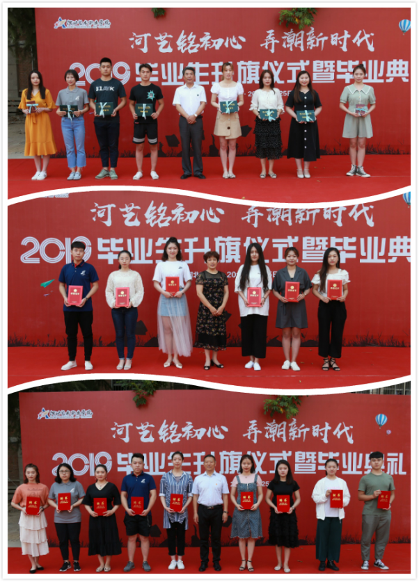 2019年6月25日,河北艺术职业学院“河艺铭初心 弄潮新时代”2019届毕业生升旗仪式暨毕业典礼活动在操场举行。学院院长庞彦强、党委副书记延凤宇、副院长刘飞、纪委书记张学红、副院长刘志欣出席本次典礼仪式。各部门领导、专业系师生千余人参与此次活动。