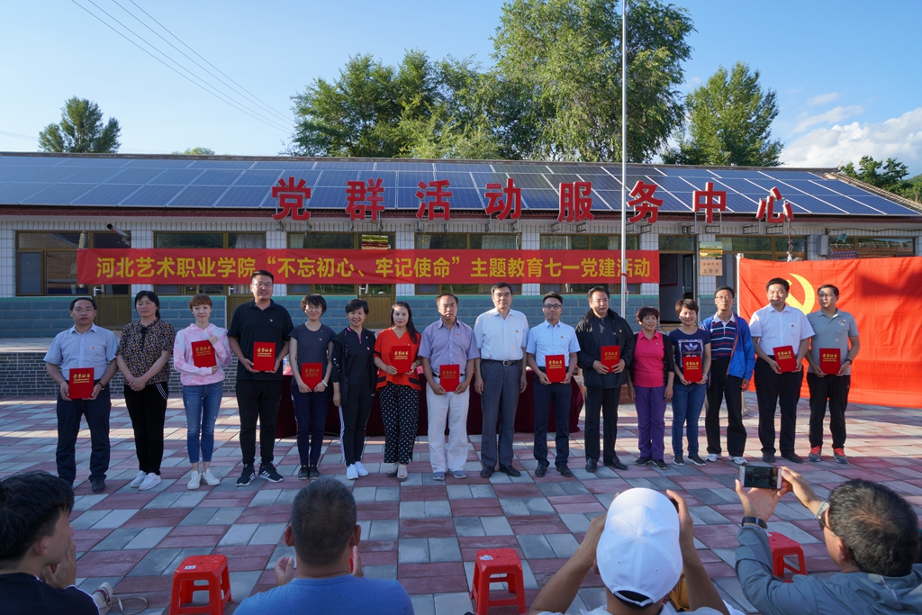 为纪念中国共产党成立98周年,深入学习贯彻习近平新时代中国特色社会主义思想,加强党员党性观念和宗旨意识教育,更好完成立德树人任务;同时,感受学院三年多来扶贫工作取得的扎实成效和进展,坚定打赢脱贫攻坚战的信心和决心,7月1日至3日,学院党委组织全体党员赴我院精准扶贫对口帮扶村——承德市丰宁满族自治县黄旗镇老虎沟门村开展主题党建活动。此次活动,是扶贫工作、立德树人与党建活动的一次有机结合,也是学院“不忘初心、牢记使命”主题教育的一项重要内容。