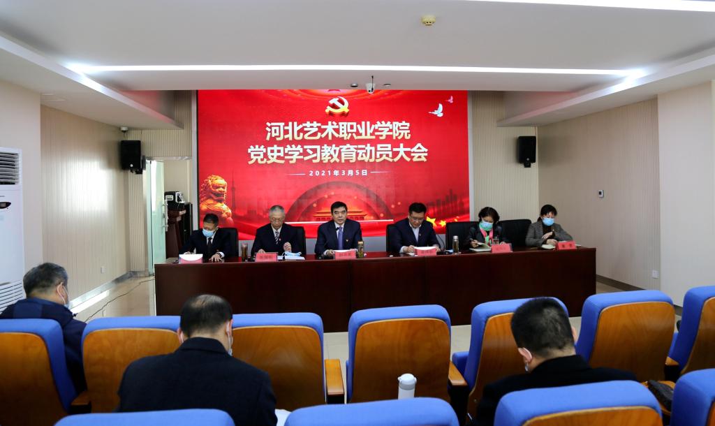 3月5日上午,河北艺术职业学院召开党史学习教育动员大会。学院党委书记赵宗更作动员讲话,党委副书记、院长蒋国新传达了中央、省委和文旅厅党组党史学习教育动员会议精神,党委副书记张国明主持大会,党委委员、副院长延凤宇、刘志欣,党委委员、纪委书记董萱出席会议。学院各党支部书记、专职副书记以及机关党支部委员参加现场会议,其他党员参加视频会议。