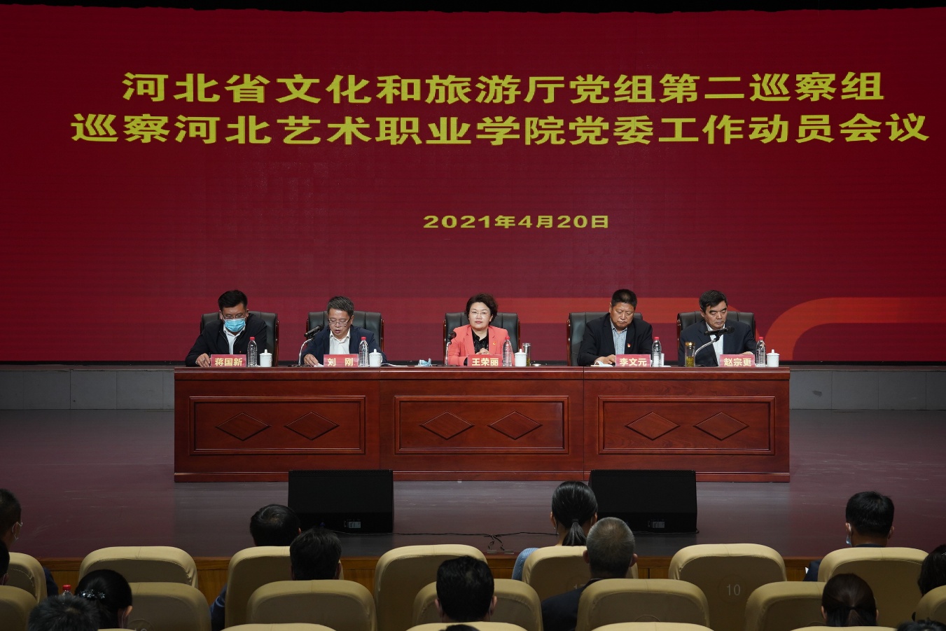 根据河北省文化和旅游厅党组第二轮巡察工作统一部署,4月20日,厅党组第二巡察组巡察河北艺术职业学院党委工作动员会召开。会前,厅党组成员、副厅长、厅巡察办主任王荣丽主持召开与艺术职业学院党委书记赵宗更、院长蒋国新的见面沟通会,传达了全省巡视巡察工作会议和厅党组第二轮巡察工作动员会议精神,通报了有关工作安排。动员会上,王荣丽作了动员讲话,对做好巡察工作提出要求。厅党组第二巡察组组长刘刚通报了巡察任务和总体安排,赵宗更主持会议并作表态发言。