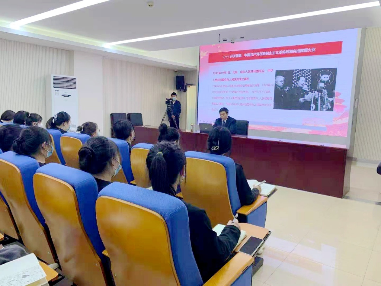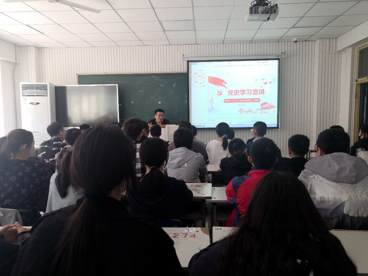4月18日,赵宗更书记以“深入学习中国共产党历史 汲取前行的智慧和力量”为题,为学生讲授了一堂党史教育课,为学生了解历史、学习历史提供了精神养料和方法指导。