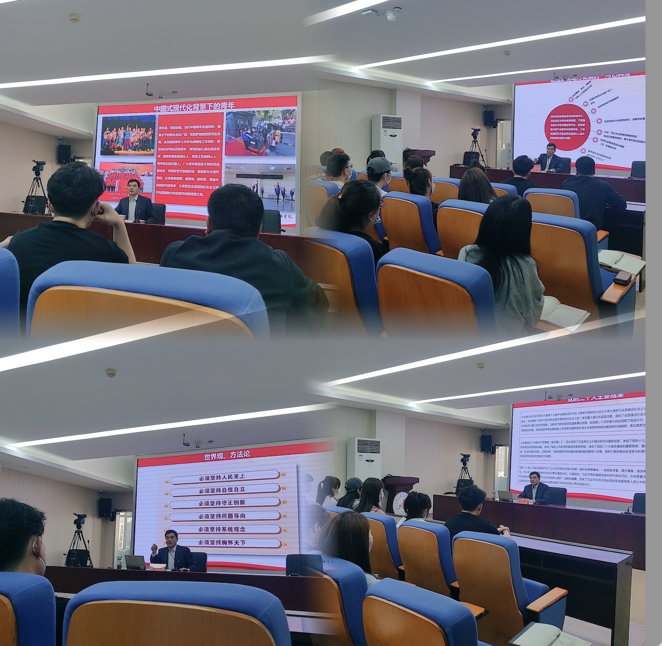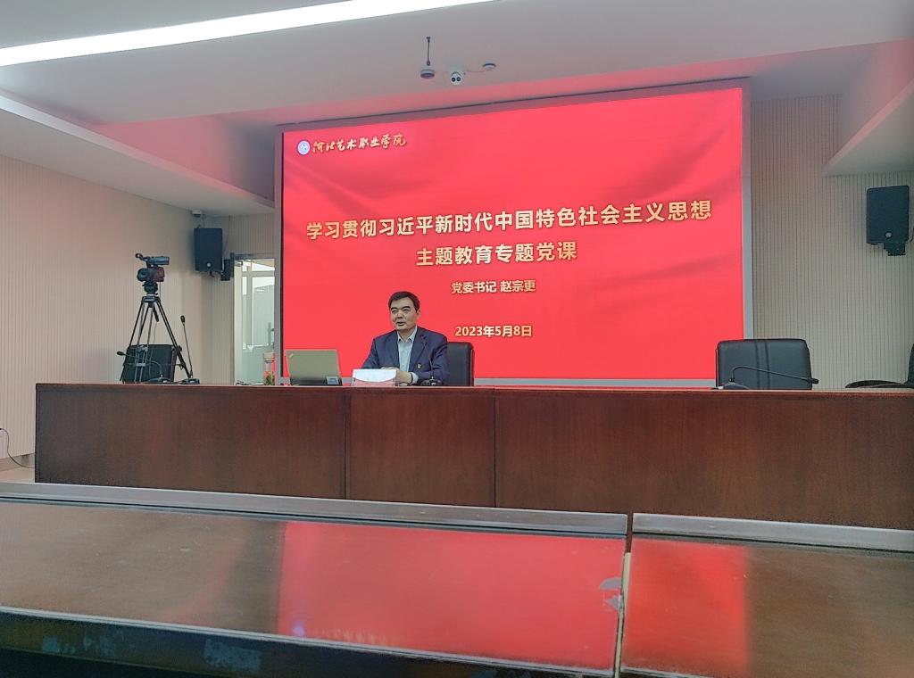 5月8日,河北艺术职业学院党委书记赵宗更以“深入学习宣传贯彻党的二十大精神,为强国建设民族复兴而团结奋斗”为主题,为影视系、美术系、音乐系、舞蹈系入党积极分子讲授专题党课,从大会的主题及成果、新时代中国特色社会主义怎么看、新时代中国特色社会主义怎么干、新时代党的建设新的伟大工程怎么建、中国式现代化河北场景、中国式现代化背景下的青年等六个部分对深入学习领会党的二十大精神做了生动的诠释。