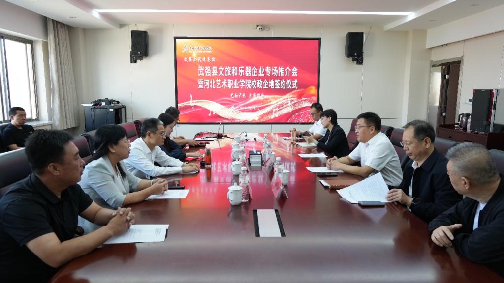 9月中旬,衡水市武强县文旅和乐器企业专场推介会暨河北艺术职业学院校政企地签约仪式在我院举行。活动以“武强乐器进高校:艺融产教 乐通校企”为主题,通过政府搭台、校企联动,构建“教育链+产业链+创新链”深度融合的生态体系。