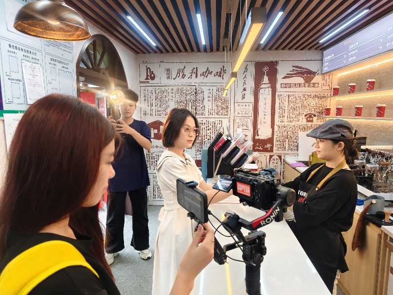 学院影视系立足发挥专业优势,服务企业需求,组织师生团队利用暑假时间,围绕石家庄文旅投集团西柏坡公司研发的“胜利品牌”咖啡,聚焦新媒体矩阵视听产品生产,在抖音、小红书、视频号、微博陆续发布系列作品,联合市广播电视台持续打造“胜利”IP推介,取得显著效益。