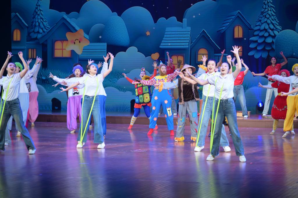 舞台光影流转,时空在此切换。时尚表演《时·溯》通过流动的剪影与节奏鲜明的音乐,展现服饰背后的审美变迁与时代精神;空乘礼仪表演《云端·悦行》则以规范的动作与从容的姿态,演绎出服务艺术中的专业风范。学前教育专业带来情景表演《稚童年》,纯真童趣的肢体语言与互动编排,传递出教育的温度与艺术的启蒙力量;台词教学情景表演《玩转元素》运用“幕后千百遍”与“台前一方台”的对比,凸显了影视系学子厚积薄发的专业精神。