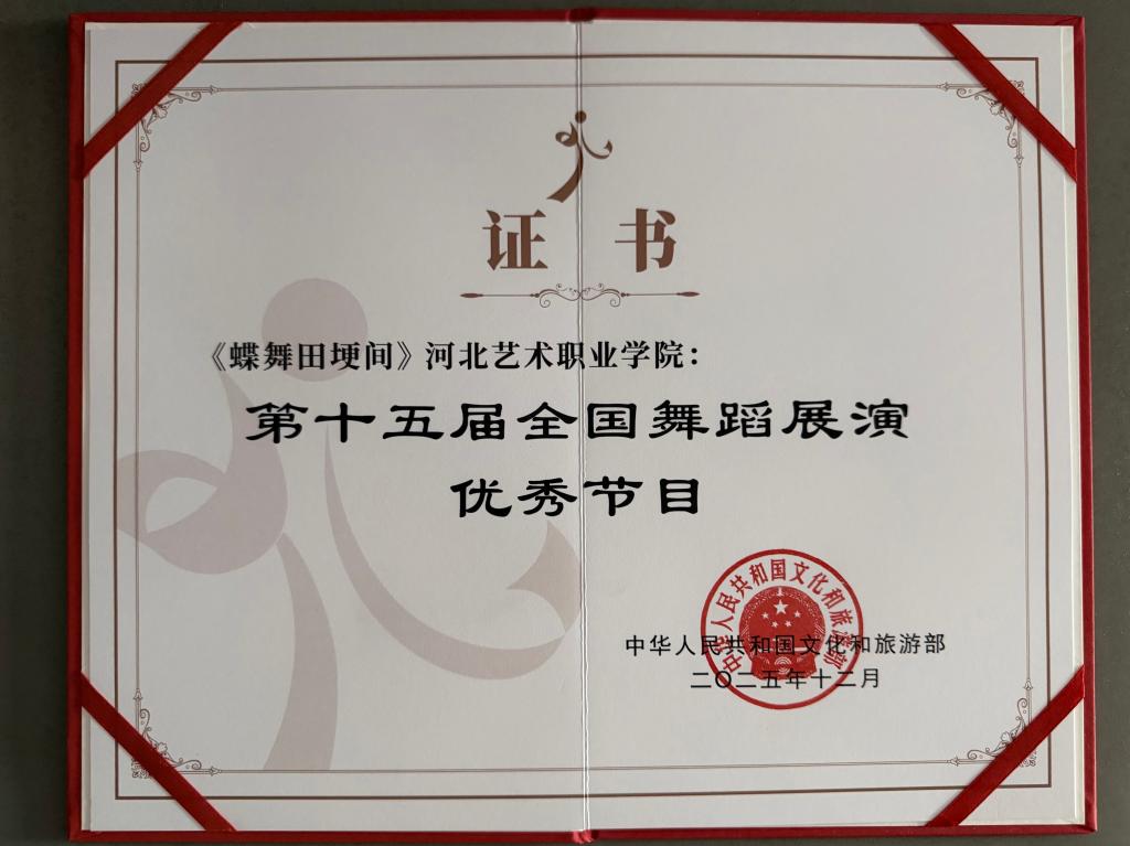 12月10日至26日,由文化和旅游部、江苏省人民政府主办的第十五届全国舞蹈展演在江苏无锡精彩上演。河北艺术职业学院选送的群舞作品《蝶舞田埂间》登台亮相,以灵动舞姿与深厚文化底蕴,在国家级艺术舞台上展现了冀东大地的人文风情与新时代乡村活力。