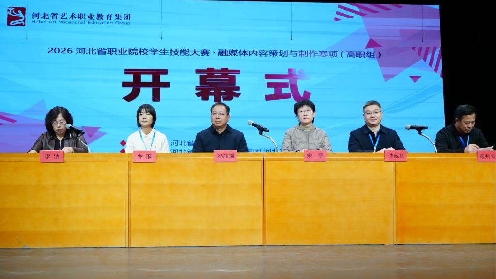 河北省艺术职业教育集团理事长、大赛执委会主任、河北艺术职业学院院长冯彦瑞在开幕式致辞中表示,当前媒体融合已进入深度发展的攻坚阶段,融媒体人才作为推动传媒产业转型升级、提升主流舆论传播效能的关键支撑力量,其培养质量直接关系到职业教育与行业发展的精准对接。本次大赛立足全省职业教育改革发展大局与融媒体行业发展核心需求,不仅搭建起院校间教学成果展示、优质资源共享、人才交流比拼的重要桥梁,更承担着引领专业教学改革、赋能产教深度融合的重要使命。希望各参赛队伍能够以赛为媒,相互学习、取长补短,在竞技比拼中锤炼精湛技能,在交流探讨中提升专业认知,不断夯实政治素养,持续提升专业本领,勇于探索创新前沿,为我省传媒产业高质量发展注入新鲜活力。