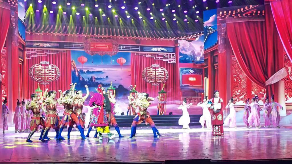 在展演中,学院原创舞蹈作品《蝶影田埂间》作为重点节目精彩亮相演出舞台,该节目曾入选文化和旅游部第十五届全国舞蹈展演,凭借浓郁的地域文化特色、精湛的舞蹈编排与生动的舞台演绎,在展演中备受关注,成为舞台上的一抹亮色。此外,河艺师生还参演了歌舞《万马奔腾送春来》、情景歌舞《老百姓的日子真提气》、歌曲《千年大计》、创意戏曲秀《钟馗嫁妹》、音乐微短剧《很高兴遇见你》、歌舞《大河之北》二三幕串联等节目。