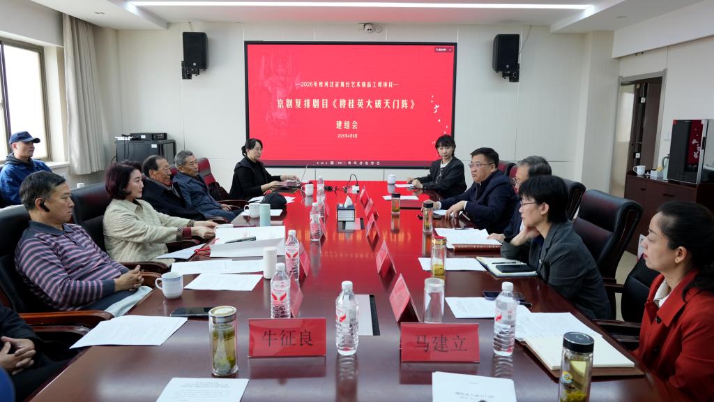 4月8日,2026年度河北省舞台艺术精品工程项目——京剧复排剧目《穆桂英大破天门阵》建组会在河北艺术职业学院顺利召开。党委书记蒋国新主持会议,院长冯彦瑞与相关部门负责同志、主创团队参会。会议邀请著名京剧表演艺术家、教育家徐宝忠,北京京剧院一级演员、第二十一届中国戏剧梅花奖获得者张慧芳,河北省文联原副主席贾吉庆,著名文艺评论家庞彦强及多位专家莅临指导。
