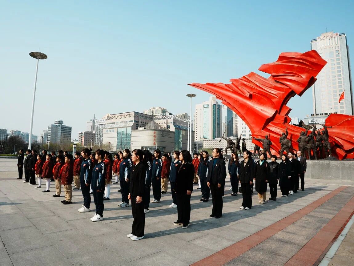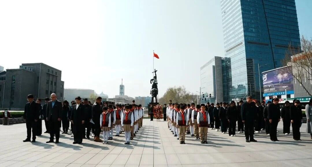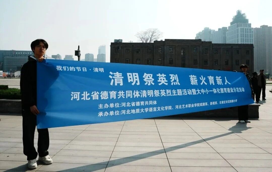 春风送暖,英烈永存。2026年3月31日上午,石家庄解放纪念馆与石家庄解放纪念碑前庄严肃穆,河北省德育共同体主办的“清明祭英烈 薪火育新人”清明祭英烈主题活动暨大中小一体化德育建设示范活动隆重举行。河北地质大学语言文化学院、河北艺术职业学院戏剧系、影视系,石家庄市范西路小学100余名党员、团员、少先队员代表“大手拉小手”结对相聚,在清明前夕缅怀革命先烈、传承红色基因,共同接受沉浸式红色精神洗礼。本次活动由石家庄市范西路小学执行承办,石家庄广播电视台城市服务频道、石家庄解放纪念馆协办,以全流程闭环设计与校地共建创新模式,为全省大中小一体化德育建设提供了可复制、可推广的实践样本。