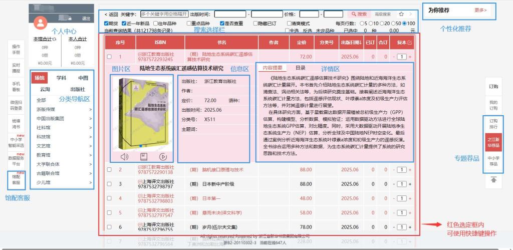 登录成功后,点击“展馆导视图”呈现的小图标,进入图书订购页面。