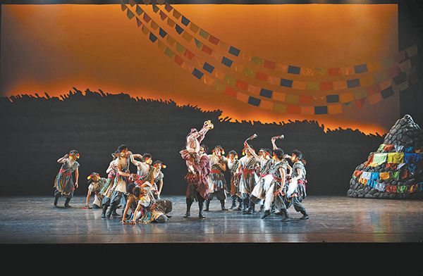 《唱支山歌给党听》以和平解放西藏、废除农奴制以及建设发展西藏的历史为大背景,围绕“阿妈和她的孩子们”两代人完全不同的命运展开。在旧时代的黑暗中,农奴们遭受着残酷的压迫,阿妈和她的孩子们生活在水深火热之中;随着解放军的到来,西藏迎来了光明,孩子们的命运也被彻底改写。该剧以藏族传统舞蹈为根基,融入现代舞的张力与戏剧化叙事,通过“向下”的压抑肢体语言与“向上”的昂扬舞步对比,呈现从黑暗到光明的历史转折。剧中有一段失明的女儿与藏族牧羊人共舞的欢快段落,感染力极强,每次上演都能引发观众强烈的情感共鸣。