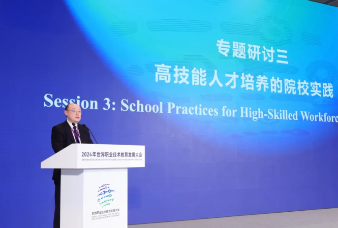在“高技能人才培养的院校实践”议题中,南瑞士艺术与应用技术大学副校长、教授伯乐(Claudio R. Boër)教授就“高技能人才教育”,重庆医药高等专科学校副校长兰作平就“实施多维多边合作 共育‘一带一路’医药卫生急需人才”,新加坡国际智能制造协会主席周伟(Zhou Wei)就“新加坡智能制造与高技能人才培养”,青海职业技术大学校长霍雄飞就“东西部协作培养高技能人才,教育援青机制探索”,德国施韦比施格明德师范大学教授约瑟夫·古格莫斯(Josef Guggemos)就“德国职业教育的最新发展:数字化整合与渗透性”,兰州资源环境职业技术大学党委副书记、校长谢军武就“深化‘三项改革’,着力培养本科层次高技能人才”,柬华应用科技大学柬方校长钟耀辉(SOK HUY)就“柬华应用科技大学建设,促进柬埔寨职业本科体系发展”,天津电子信息职业技术学院校长张丹阳就“推进数字化转型,重塑职业院校新形态的创新与实践”,俄罗斯弗拉基米尔国立大学副校长潘菲洛夫·阿列克谢(Aleksei Panfilov)就“俄罗斯职业教育质量监测与评价:培养高技能人才”,常州机电职业技术学院党委书记沈琳就“从‘伴企出海’到‘随园建院’—‘郑和学院’国际合作的创新与实践”,作主旨发言。该环节由天津商务职业学院党委书记马雷主持。