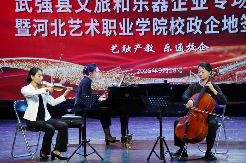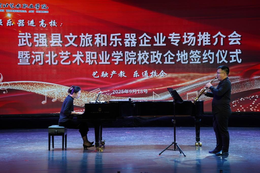 武强县作为“中国乐器之乡”,拥有金音、正欧等龙头企业,其西洋乐器以“卓越工艺、优良品质和独特音色”享誉全球,具有扎实的产业优势和校企合作前景。河北艺术职业学院作为我省重要的艺术人才培养基地,办学特色鲜明,在人才培养、专业突出方面具有显著优势。未来,学院将把产业行业前沿需求融入教学,让学生在校即接触真实工作场景。在校政企地融合框架下,专业艺术人才的高地与特色文化产业集聚的沃土二者密切契合,必将在助力“产业技术升级—人才精准培养—文旅IP塑造”可持续发展场景创立中实现优势互补、共赢发展。